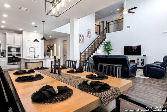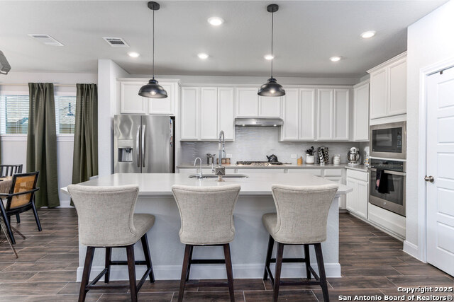 Feel like you've just stepped into the pages of Southern Living! Seller offering $5,000 in FLEX CASH! Prepare to be wowed by The Latham Floorplan a stunning David Weekley masterpiece that perfectly blends modern elegance with everyday comfort. From the moment you enter, you'll feel an immediate sense of style, sophistication, and warmth. This two-story showstopper sits on a .17-acre lot and features 4 spacious bedrooms, 3.5 baths, and a 3-car garage designed with convenience and versatility in mind. The home includes a second master suite upstairs, offering flexibility for guests or multigenerational living. On the main level, you'll find a private study, perfect for a home office or quiet retreat. The open-concept living area steals the show with soaring 20-foot ceilings and an abundance of natural light, creating an inviting atmosphere that's ideal for both relaxing and entertaining. The gourmet kitchen is a dream come true for any home chef, featuring gas cooking, sleek white cabinetry, and ample counter space and storage the perfect blend of function and style. Outside your doorstep, the community offers resort-style amenities including a clubhouse, park/playground, jogging trails, BBQ area, and basketball court - everything you need for an active, connected lifestyle. Located just minutes from Loop 1604, Hwy 90, and Hwy 151, with Lackland AFB only 15 minutes away and SeaWorld just 10 minutes, you'll enjoy quick access to premier shopping, dining, and entertainment. This is more than a home it's a statement of style, comfort, and modern living.